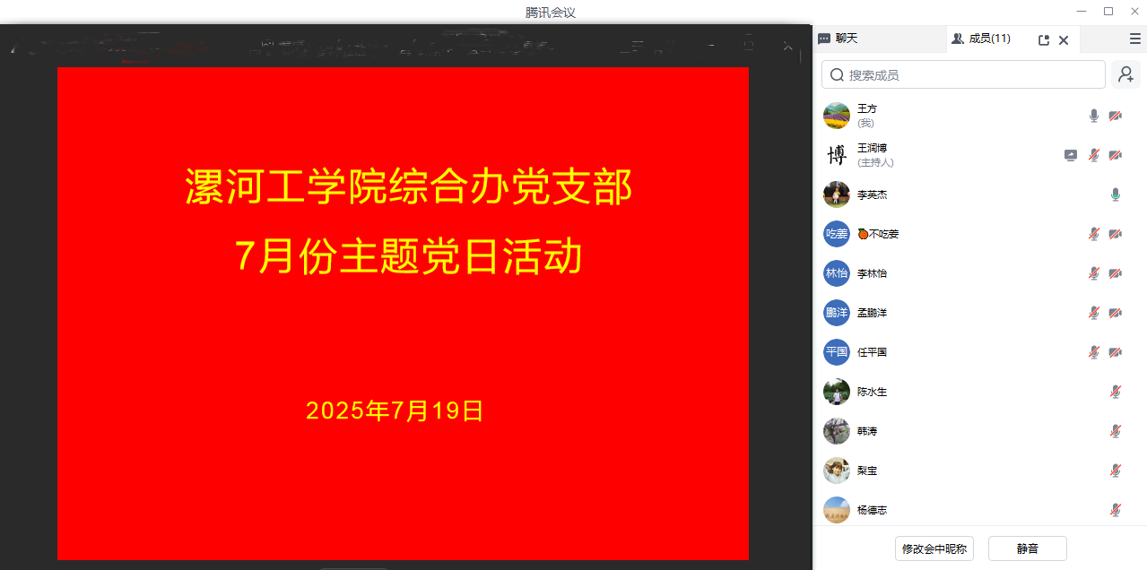 7月19日,太阳成集团tyc122cc综合办公室党支部在线上开展7月份主题党日活动,活动由支部书记王方主持。